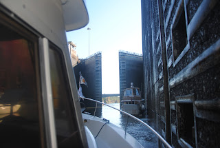 Prior to the first lock, we had a Grady White similar to ours on the Loop who waked us which was quite a shock, disappointing, and unusual. At the first lock of the day, we had a barge in front of us which caused us to have to wait about 90 minutes. A couple on a boat similar to ours, radioed us and said we could tie up next to them while we waited for the barge to lock through which we did. Nice couple from Cortez, Florida which is about 20-25 miles from us in Siesta Key. When we pulled up, on the other side of the boat was the Grady White. The guy never apologized or anything. I thought maybe he thought it was his friend he waked. Nevertheless, bad boating etiquette. We will go through 3 locks and drop 144 feet to Fulton and then 4 locks to Columbus, dropping another 107 feet.